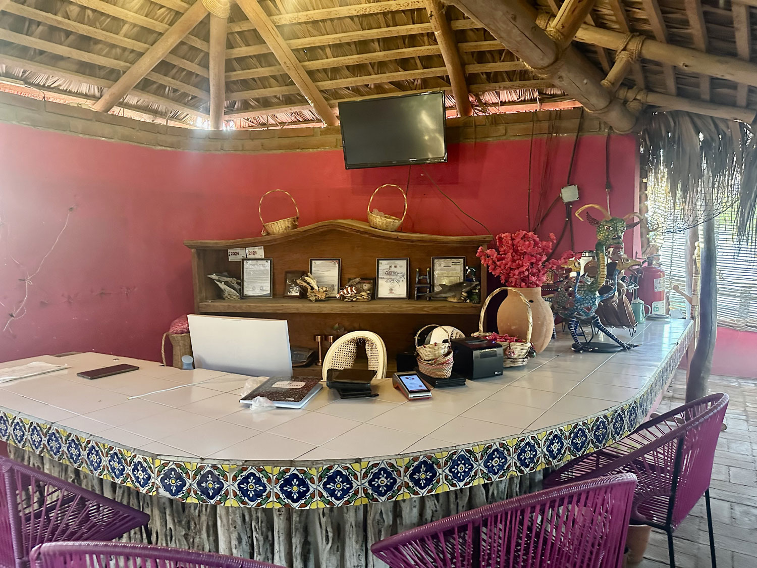When we first started going to Rigos Restaurant, it was a small place all alone on the way to the airport. Frutas y Veduras was the only store nearby. It was a great local place for lunch and dinner. The original restaurant is now where most people sit for breakfast and there is a new large room under a palapa. The menu has a great deal of choice – appetizers, a long list of seafood dishes (hot and cold), fresh fish, chile rellenos, enchiladas, fajitas, tacos, quesadillas, steaks, chicken, and brochetas (kabobs).