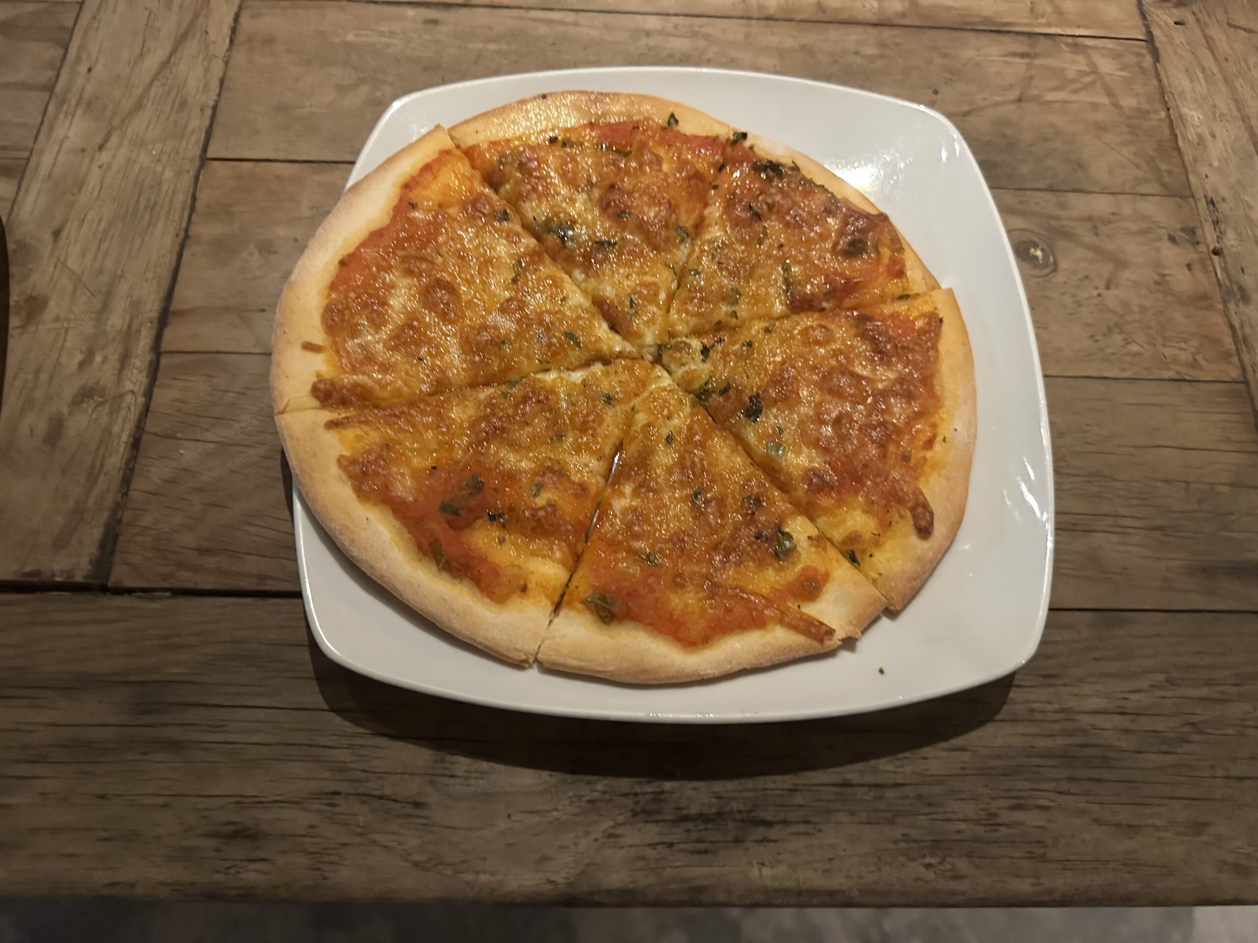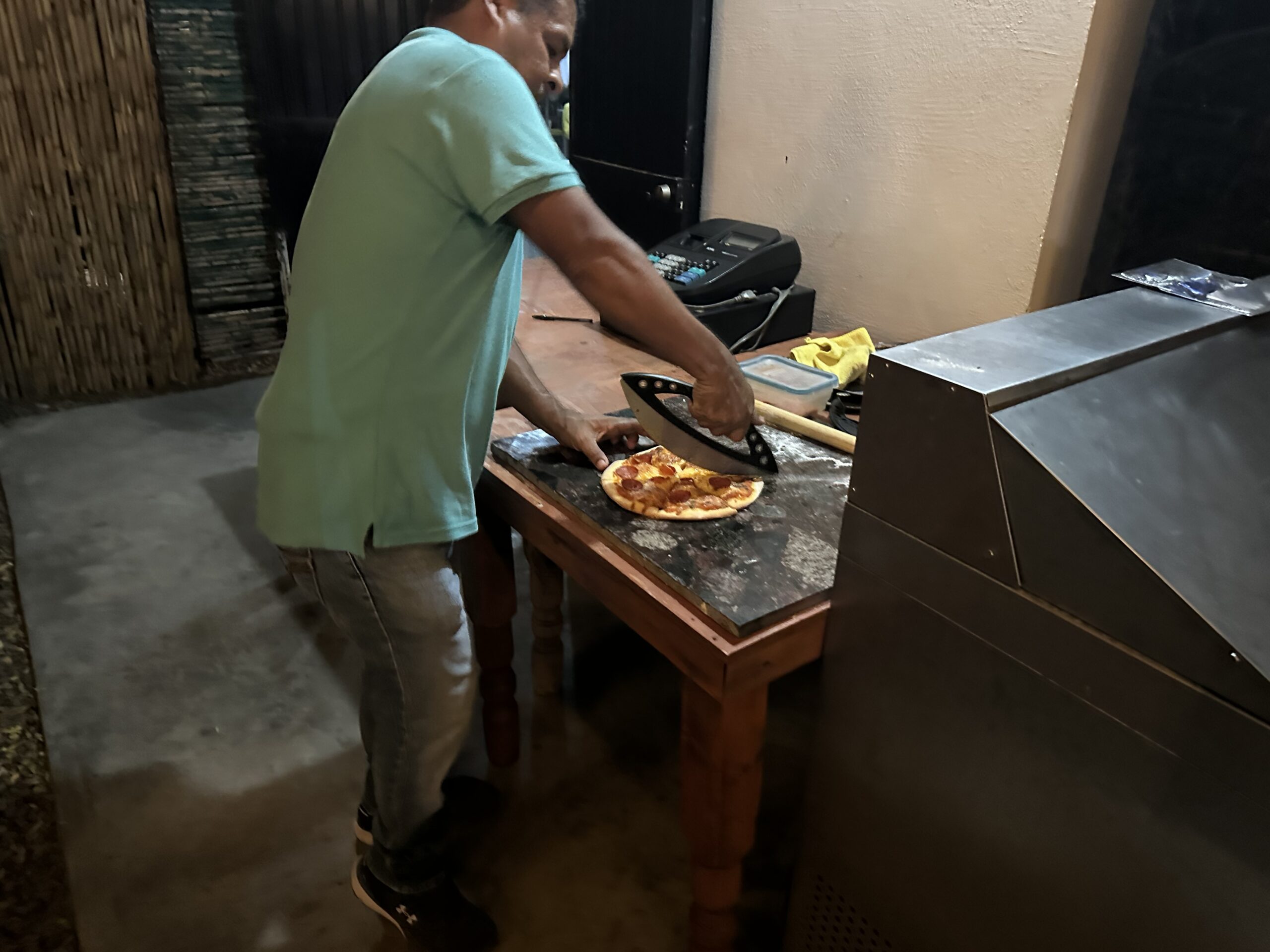 I asked for a diet Coke and the Poblano enchiladas. The plate of three enchiladas was covered in an incredible poblano cream sauce. The chicken was shredded and juicy. I think that they were the best enchiladas that I had ever had. I wanted to check out the other dishes served at Sabores, and so I asked Landi if I could take a few pictures of items coming out of the kitchen. The entrée of the day was tacos. The three tacos looked delicious covered with onions and peppers. I watched to different personal pizzas – pepperoni and margherita – being made, put in the oven, and served to customers. All of the food looked very good and the prices met Landi’s desire of offering a reasonably-priced alternative to many of the restaurants in Todos Santos.