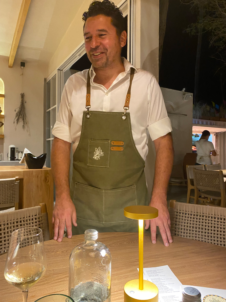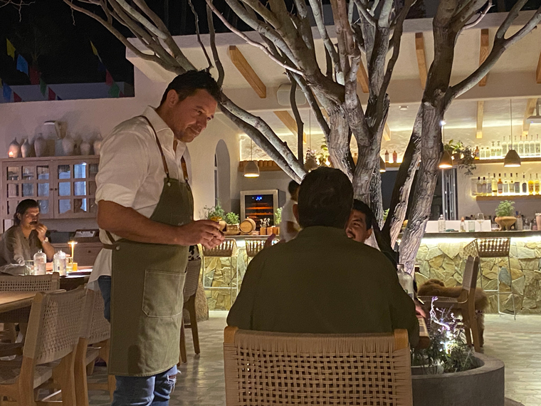 We also had a visit from one of former neighbors in Zacatitos, Matt Vallone. It turns out that Matt and his wife Rachel are involved in the restaurant. Paying attention, I noticed that they were both working. There is a display area of dishes and accessories, and Rachel was making sure they were ordered carefully. Rachel had designed all of the menus and materials and I am sure they were both involved in the design of the restaurant itself and it has similarities to their modern home in Zacatitos.
