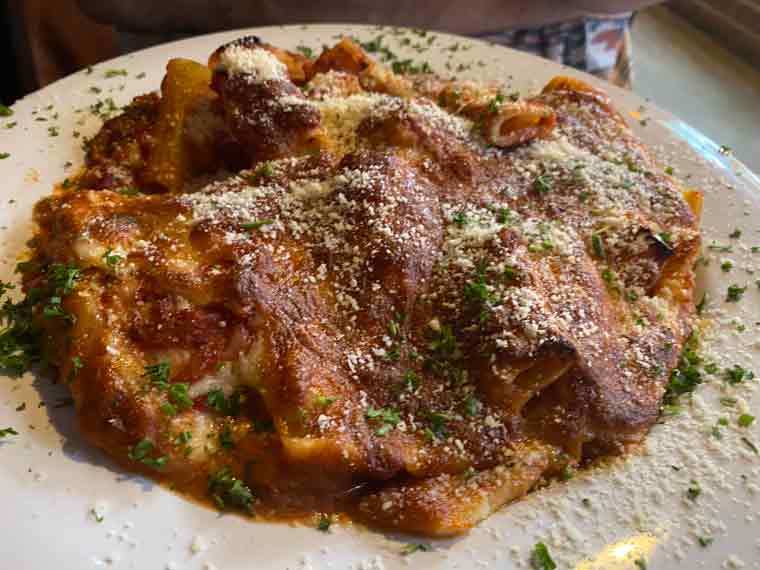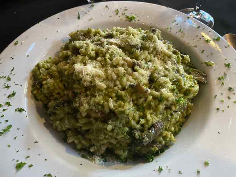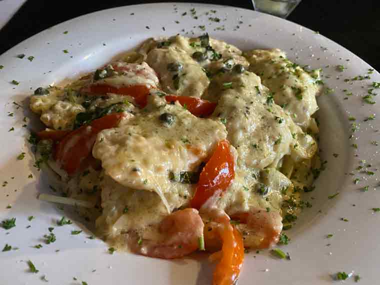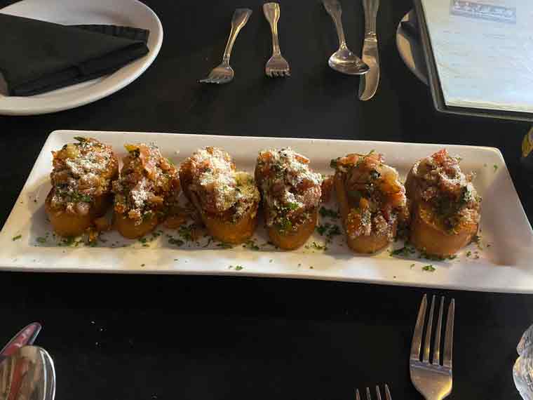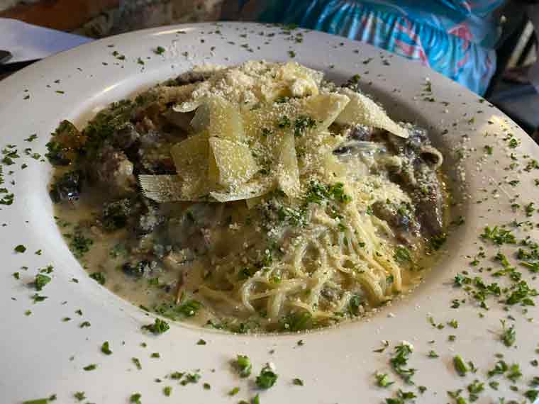 I had previously been to Salvatore G’s for lunch but Beth and our friends, Bill and Tanya Girdwood had never been there. So, this was a treat. I warned them about the size of the portions. Amor, our server was a treat and very helpful. We ordered the bruschetta as an appetizer for the table and an additional shrimp appetizer. They were plentiful and delicious. Caesar salads were also served to the table with grilled garlic bread and fresh parmesan cheese. Our entrées included chicken piccata for Beth, the mushroom risotto for me, the baked rigatoni for Bill and a special pasta for Tanya. Everyone had part of their meal to take home as the portions are so large. While we were dining, the staff all came out to sing happy birthday to a woman at the table next to us.
