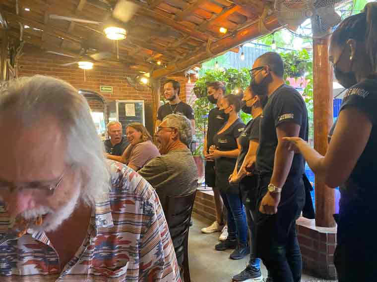 Interested in great Italian food with huge portions at reasonable prices? Then, you need to try Salvatore G’s in Siesta Suites Hotel in Cabo San Lucas, one block north of the Tesoro and beside JM Italian Steakhouse. Salavatore G’s has indoor and outdoor dining on two levels. With an incredible staff, the servers wear t-shirts with “Legalize Marinara” on the back (I like most people first read it as “Legalize Marijuana”). The menu is extensive with appetizers like stuffed mushrooms, bruschetta and calamari as well as several salads. There are vegetarian, seafood, chicken and meat entrées as well as a variety of house specials.