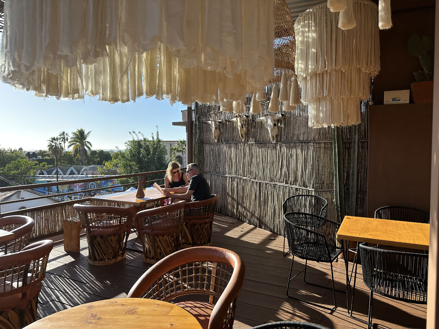 Todos Santos is full of small restaurants throughout not only the downtown but the outer edges of the town. SanToro is located on Marque de Leon just off the main street Benito Juarez of Todos Santos near the Hotel California. The main dining room is up on the third floor of the building with a view of the Pacific. Guests enter the second-floor host area from a ramp and stairway off the street (not disabled friendly). A hostess then took us to the third floor where there are two dining areas – one in the bar.