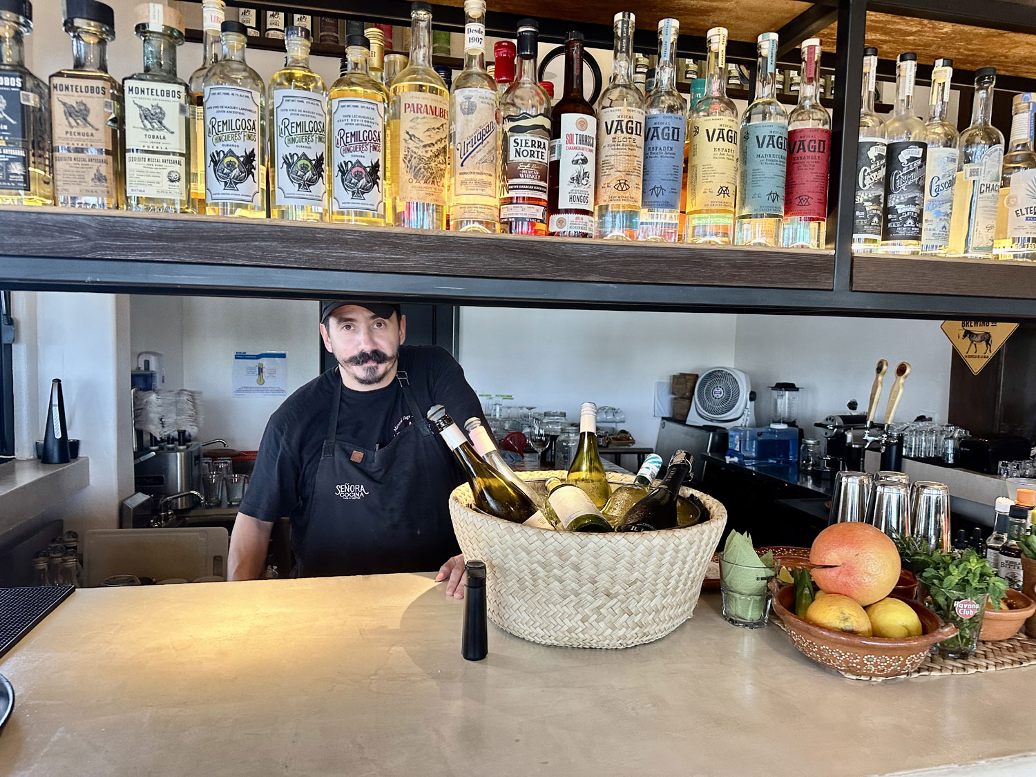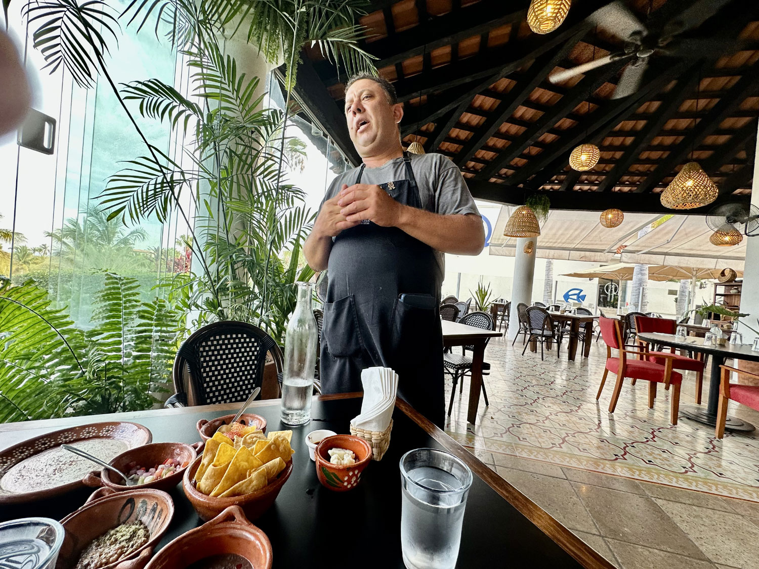 Located in The Shoppes at Palmilla, Senora Cocina Casa & Cantina has taken over the space previously occupied by Chin’s. We were greeted at the door, and asked if we would like to sit inside or outside. We chose a table outside on the deck. Our server, Juan provided us with menus and gave us a little history of the restaurant and the menu. We had the opportunity to meet Juan Pablo Lozo (JP), the owner, who told us that the restaurant was modeled after the traditional cantinas on mainland Mexico. He wants it to be a place where friends and family gather, not only for good traditional food by for games, parties, and events. He also decided that his food had to be priced so that families could enjoy the restaurant, and not only tourists, who are used to the higher prices at resorts in the area. JP has a long history in the hospitality business. He worked at La Ventana El Paraiso many years ago, and spent much of his career with Rosewood Resorts, working around the world. When he decided that he wanted his own restaurant, he came back to Los Cabos. Senora Cocina Casa & Cantina has been open for about six months.