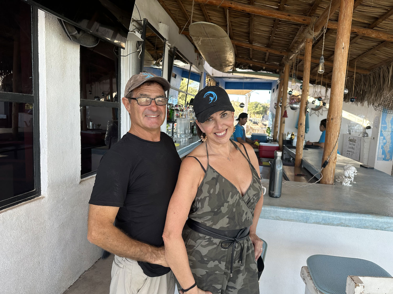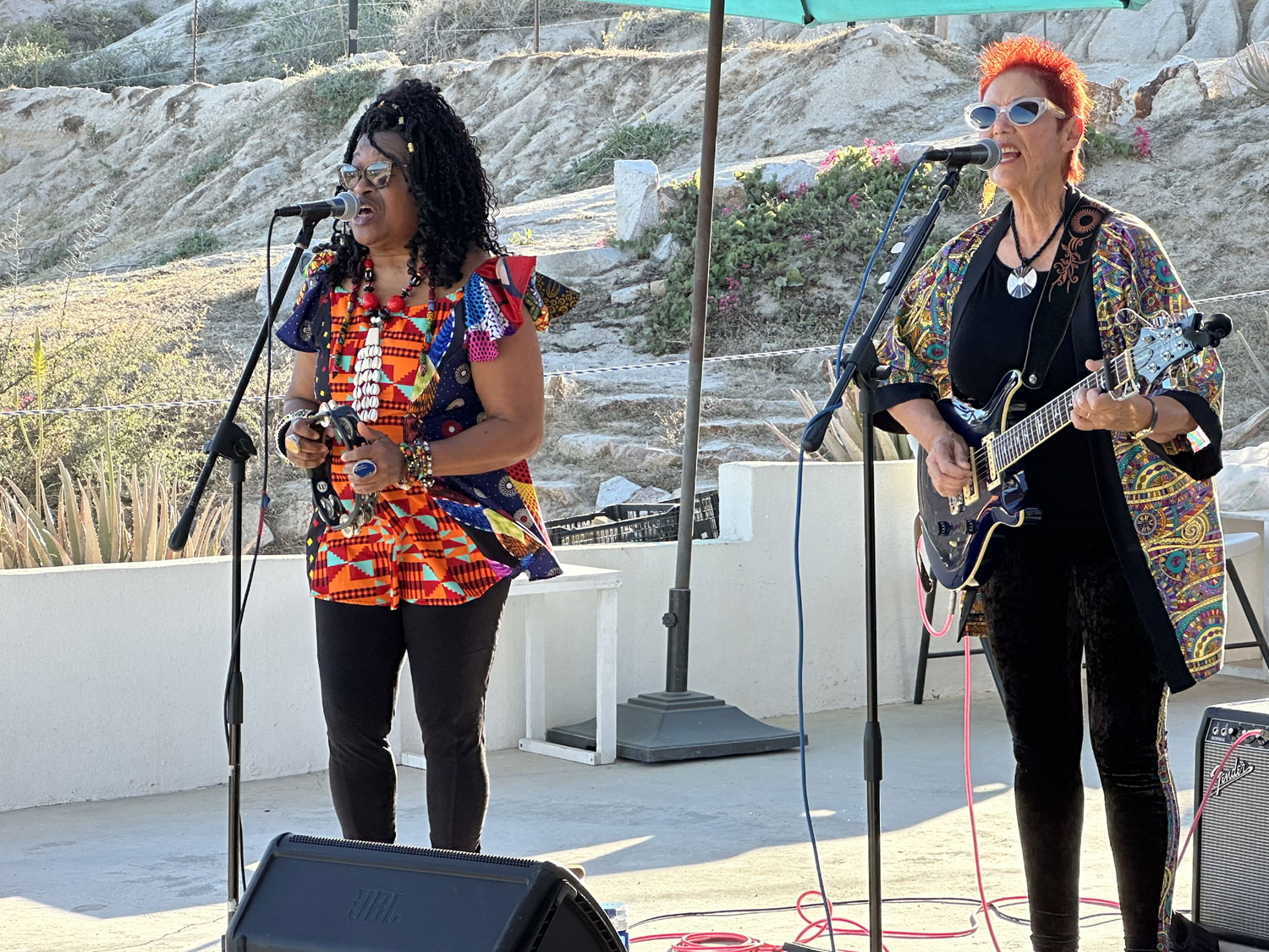 La Fortuna is not only in the center of the surfing world on the East Cape of Los Cabos, it has become a restaurant area. With Zai Sushi Surf Bar, Lateral and La Fortuna, Restaurante La Fortuna, Liebre Matrera and Shade at La Fortuna Beach Bar and Grill. Shade has live music and Saturday afternoons and a great menu of Mexican and American Favorites. We recently went with our friend Ethan to see Sharon Katz and Wendy Quick of Peace Train perform. We were greeted as we walked into the restaurant by Marcus and Belen, the owners. Marcus is South African and was excited to see Sharon Katz perform.