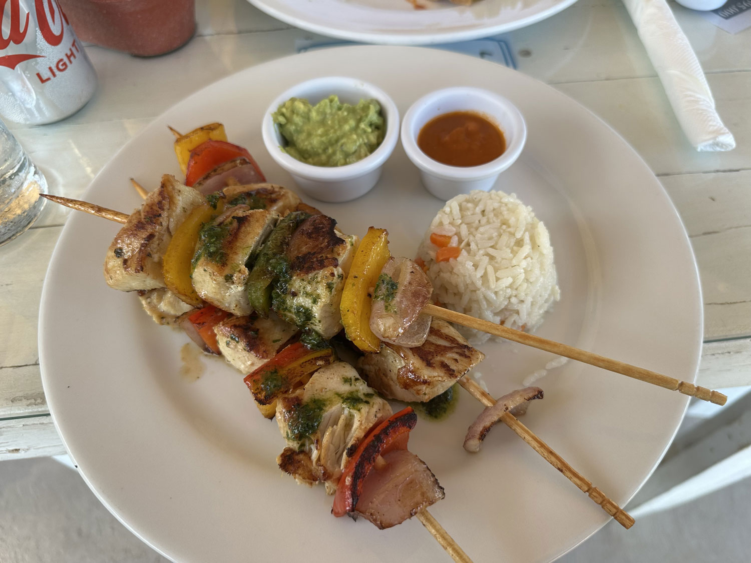 Chicken Skewers. Everything was delicious and the service was great. Rambo, Marcus and