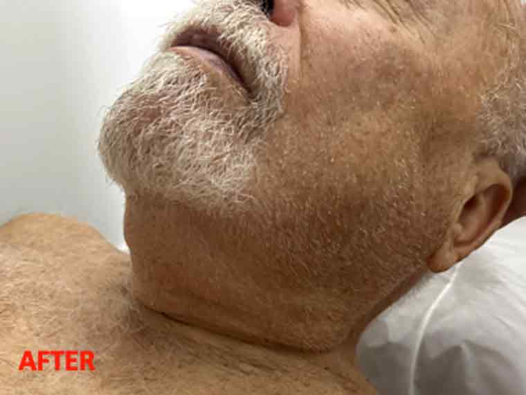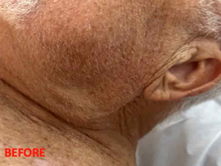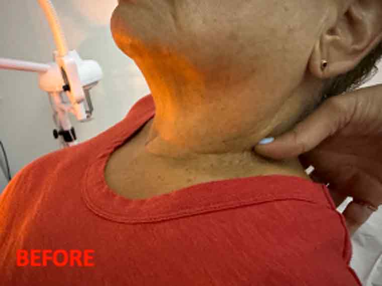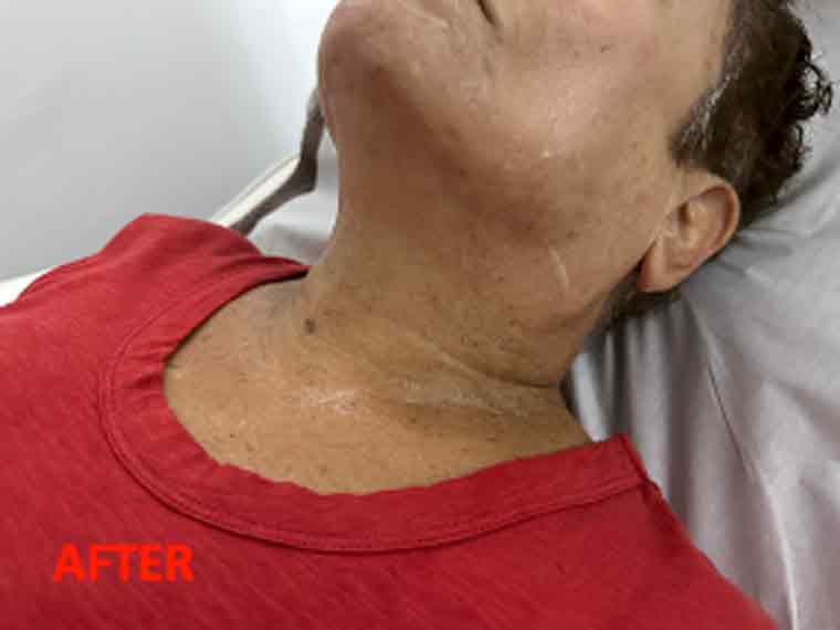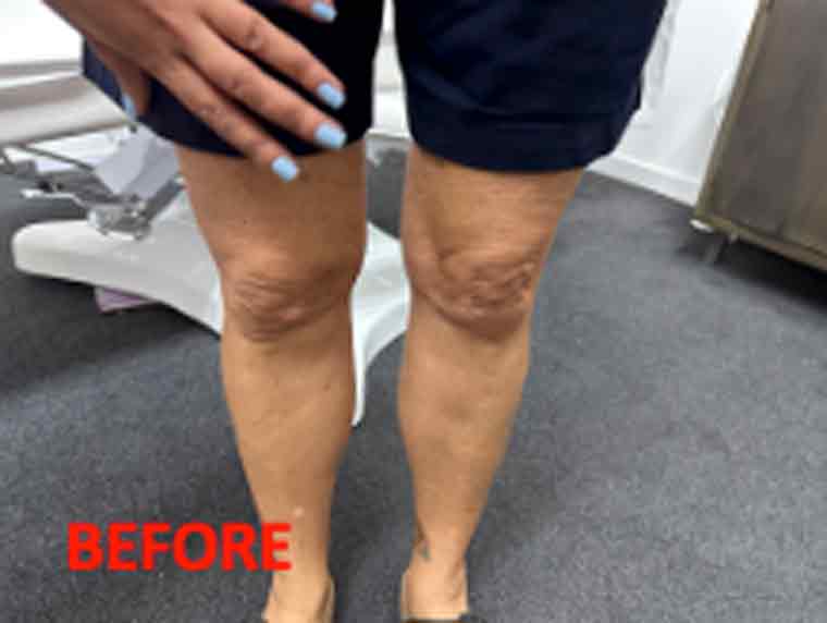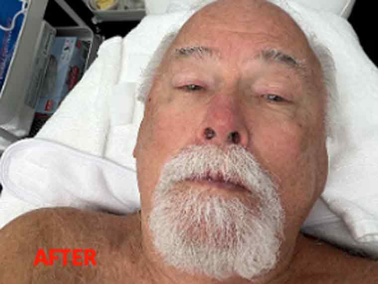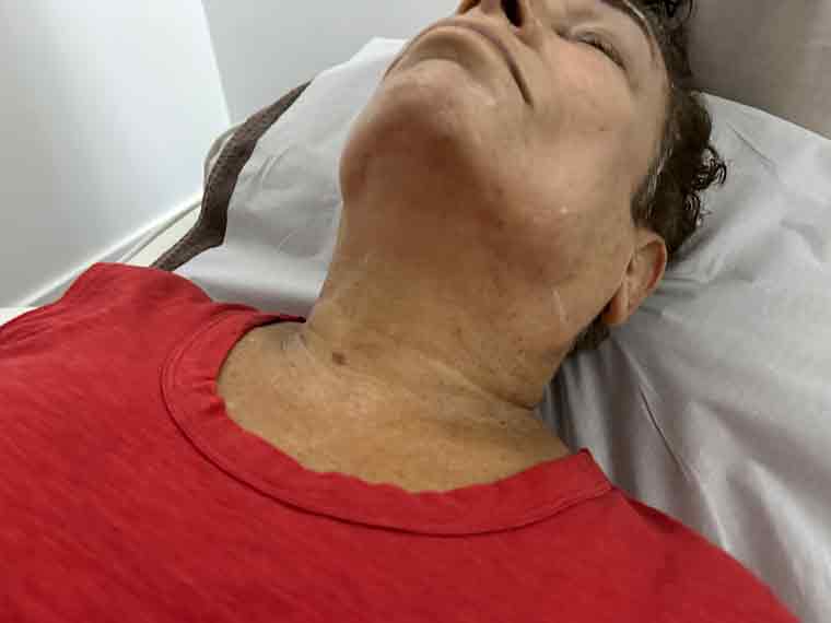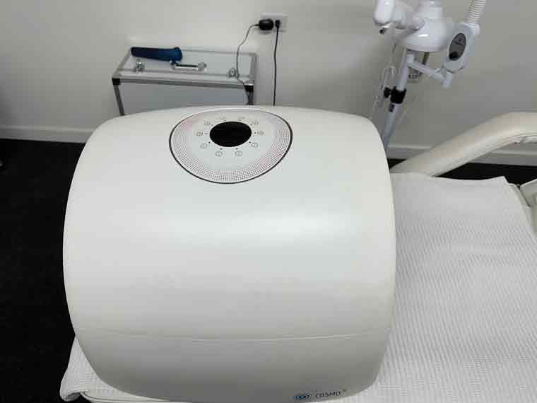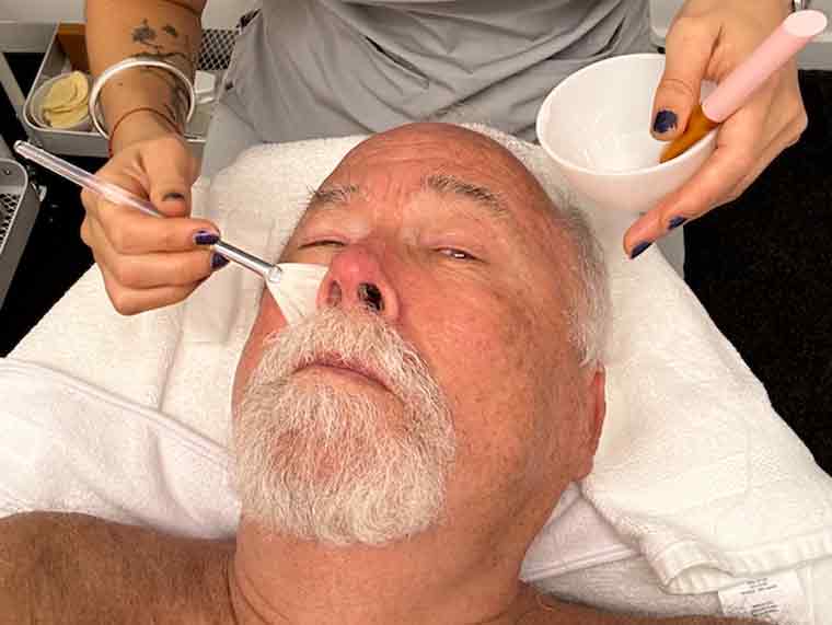 Our last experience with an LED device was completely different. The Cosmo by Space touch is a whole-body device that produces all types of LED light – red, blue, green and yellow. The device is placed over different sections of the body and by cycling through the different LED lights it can stimulate collagen and elastin production (red), improve skin texture and reduce brown spots and acne and acne scarring (blue), reduce inflammation, treat nerve conditions, manage diabetes and stomach conditions (green) and treat skin redness and flushing, rosacea, UV radiation damage and reduce the appearance of telangiectasias (ruptured blood vessels) on the nose and face (yellow). For this treatment, we were back at Natural Beauty MedSpa in Puerto Paraiso. Both my wife and I went through the full treatment – first on our legs and mid-section and then on chest and head and face. For the facial treatment, we each had a full collagen mask on our face and neck. This magnifies the effects of the LED treatments. We took some before and after photos that showed in this short time that wrinkly skin on our knees, looseness of the skin on our necks had improved significantly. The addition of collagen lotion following the treatment helped to continue the effects over time.
