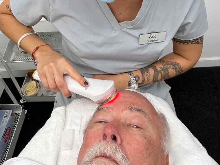 Our first experience with an LED device was at Natural Beauty MedSpa in Puerto Paraiso in Cabo San Lucas. As part of an overall facial, the Oneo Advanced by Avologi was used as the final step in the process. After applying a collagen mask lotion, Zoe treated each section of my face and neck for four minutes. The before and after photos showed an overall improvement in skin tone and my skin certainly felt smoother. The handheld Red LED light device was developed by NASA and FDA approved to help with the production of collagen and elastin to help tighten skin and fight the signs of aging – wrinkles, sagging skin. This device can be used anywhere over the body and I have tried it on the crepe like skin on my legs.