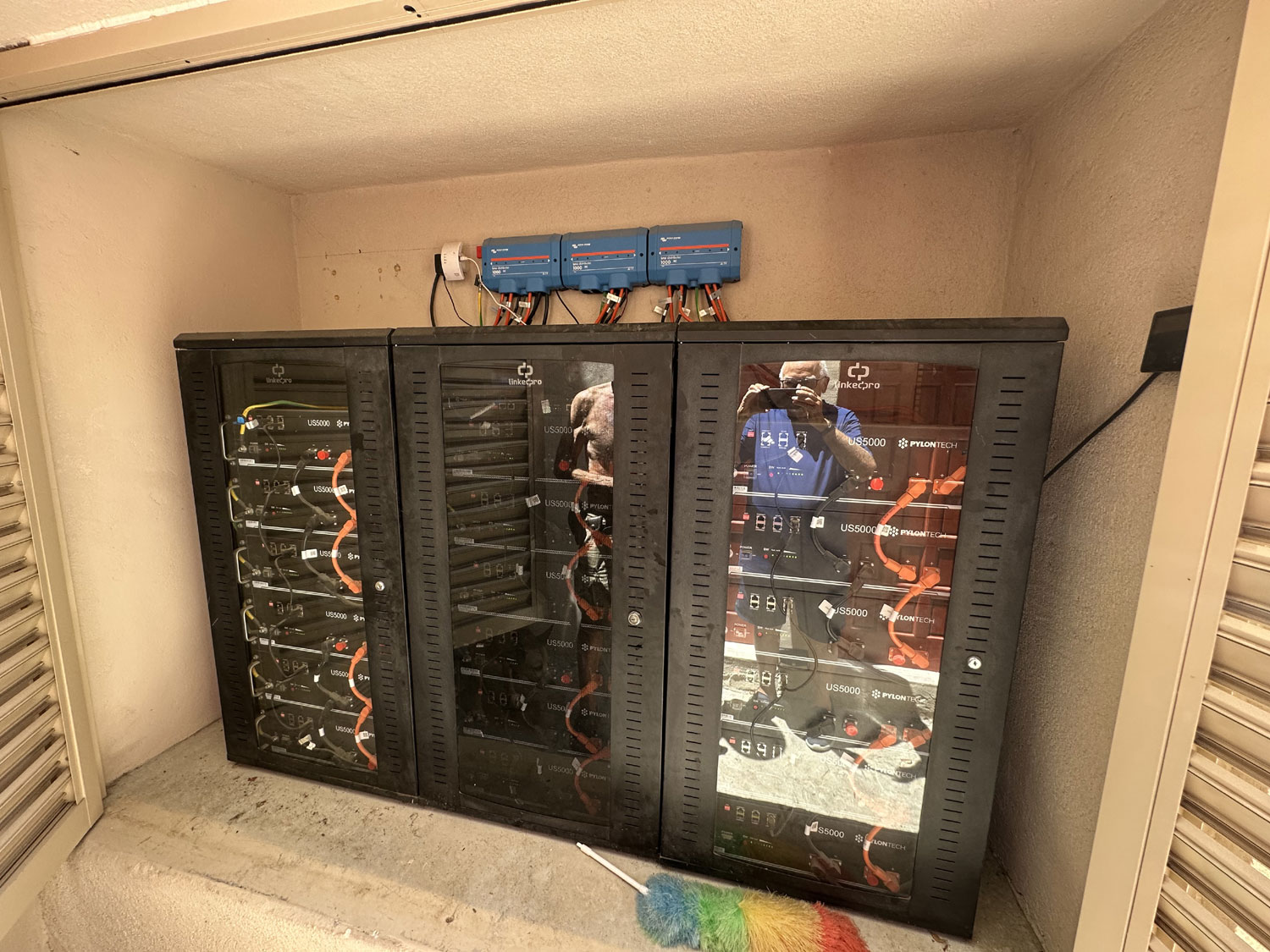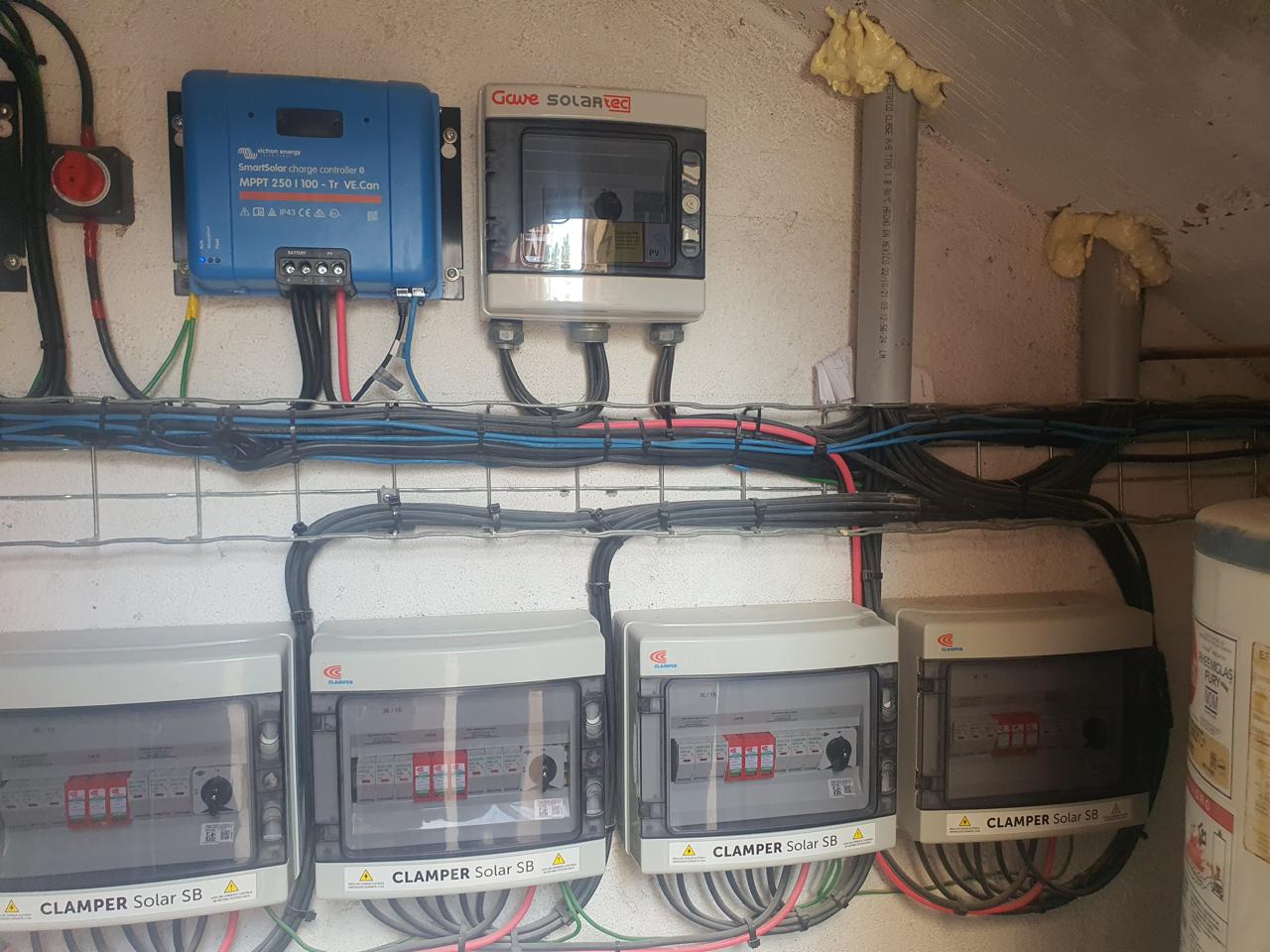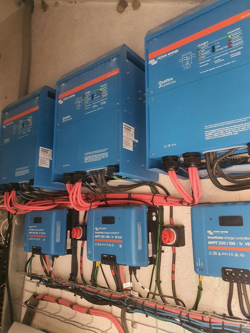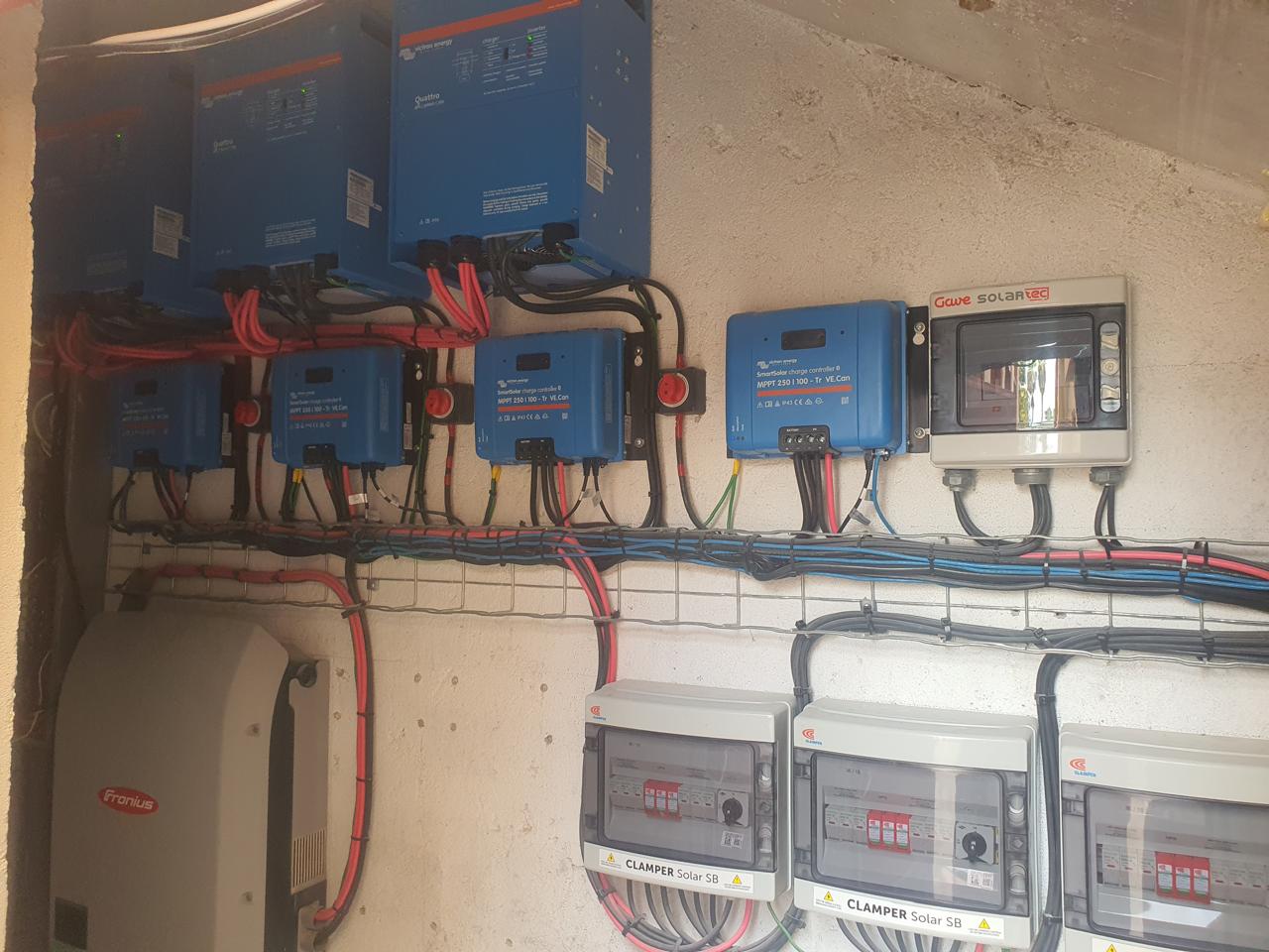 It was only recently that I learned that La Tinajas Winery operation (making the wines, separate from the tasting room) is completely powered by a solar system installed by TVLsertec, Los Cabos’ second oldest solar company, founded in 2013. The roof of the winery side of La Tinajas is covered with 75 Canadian Solar panels with 410 W each. This provides a total potential of 30.75 kW of energy and hour to run the operations of La Tinajas in the production of its wine. The energy from the solar panels is converted to electricity to directly operate the winery operations and to charge the lithium-ion batteries with Victron Inverters and three Victron charge controllers. One charge controller is dedicated to each of the three Pylontech battery management cabinets. Each cabinet holds 6 4.8 kW lithium-ion batteries for an overall storage capacity of 86.4 kW of storage.