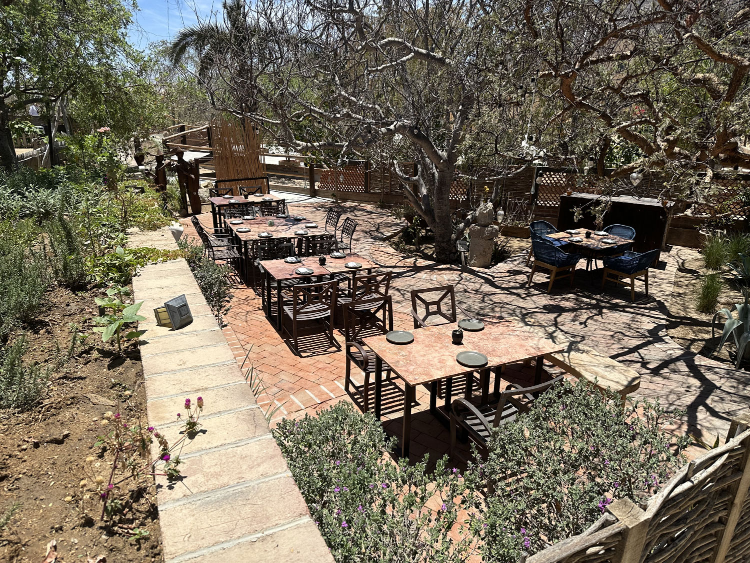 Torote Restaurant in Valle del Sol at the back of El Tezal in ranch country is much more than a restaurant. It is truly farm-to-table with gardens, chickens, and a relationship with a local ranch to supply most of the ingredients for its incredible food. But, beyond the restaurant, there is a small chapel for weddings, an amazing event space for your private parties, and a paddock with goats, sheep, and a donkey where you can feed the animals fresh vegetables from a small bucket. The second-floor lounge of the restaurant has amazing views of Lands End, the marina, and mountains. Sunsets are amazing.