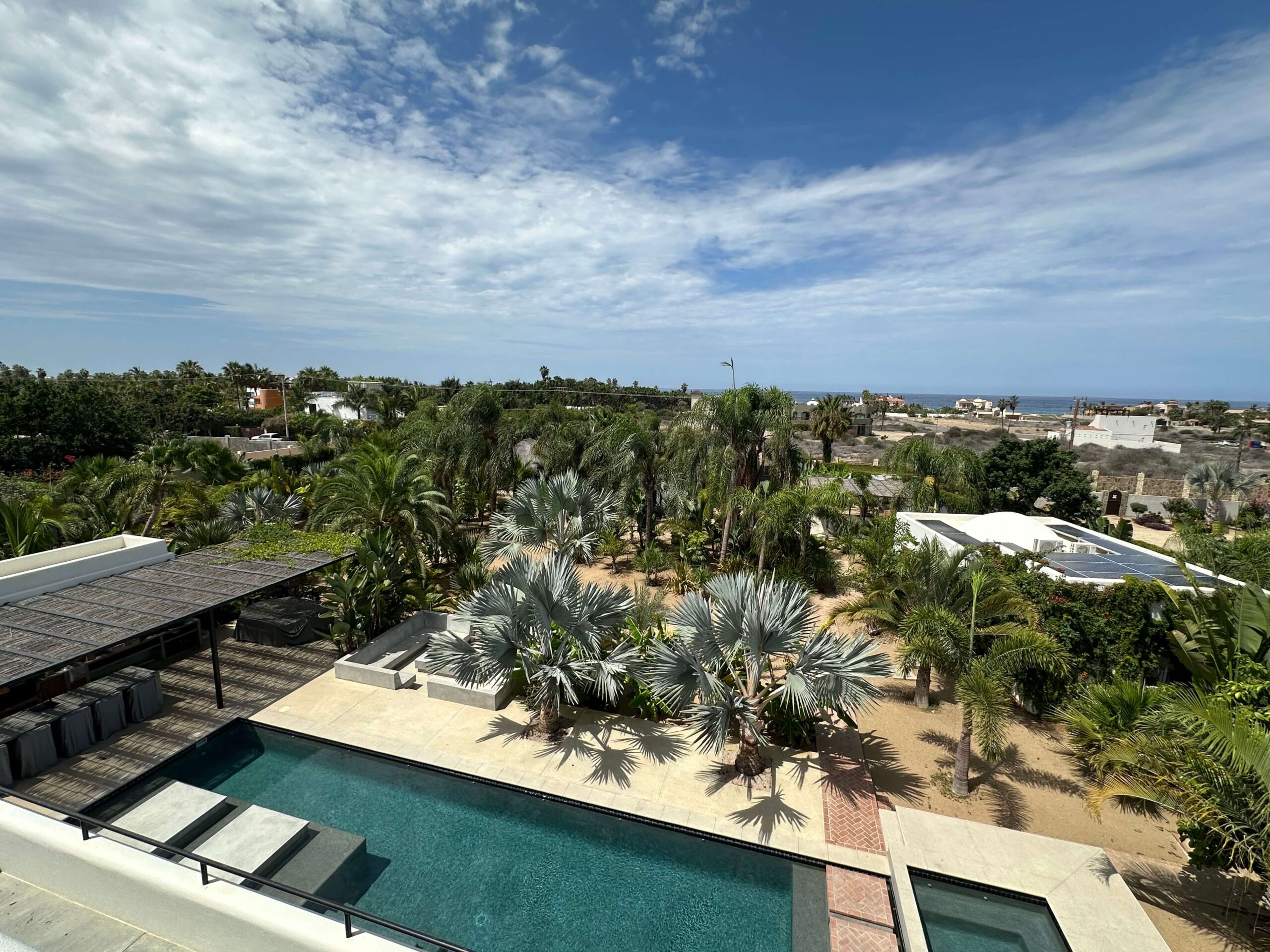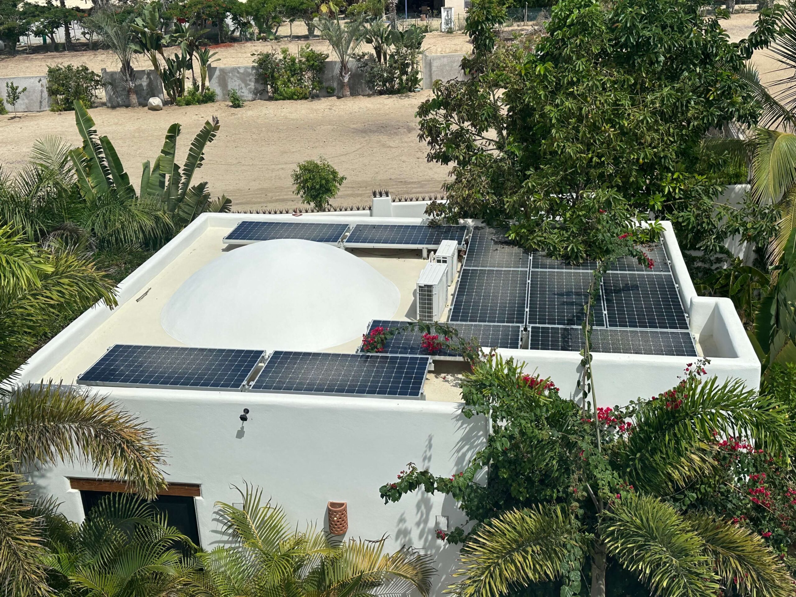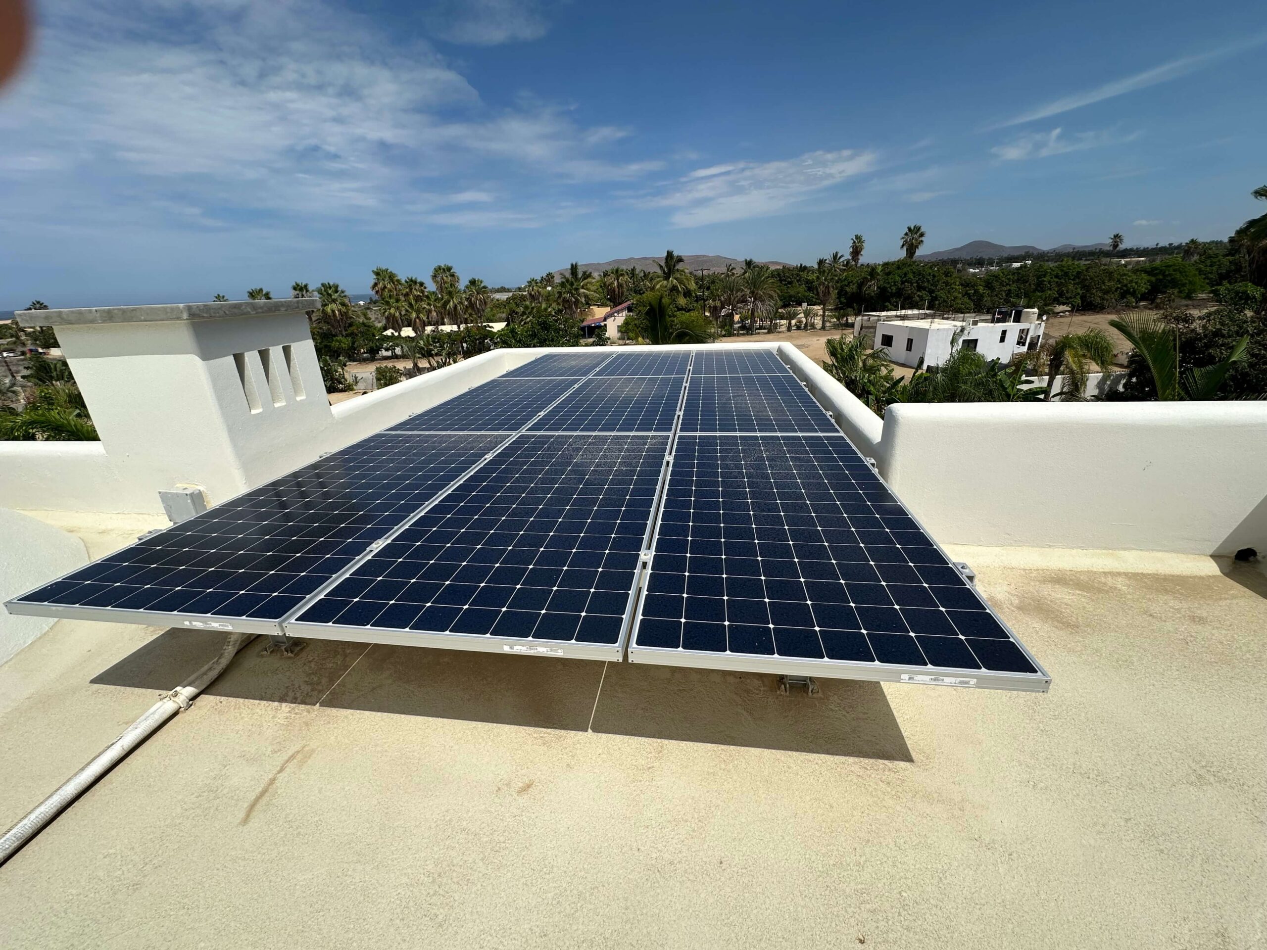 In the flats of Pescadero, not far from the Pacific Ocean is a compound that contains a three-bedroom house with vaulted ceilings, two large one-bedroom casitas, a garage with a caretaker’s unit above, a grove of fruit trees, an amazing swimming pool and outdoor living areas. To reduce the overall cost of operation, the Colorado owners of the property asked Innovacion Solar to design a solar system that would manage much of the electric needs of the property. They had recently asked to increase the storage capacity of the system to include the two casitas.