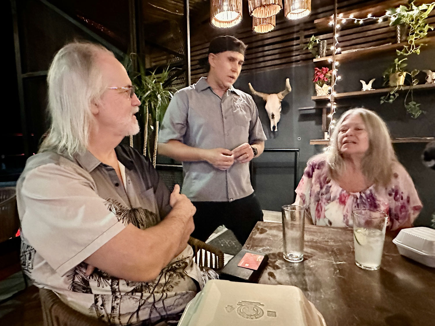 Last night, December 6th, 2025, Taba BBQ held a very special celebration of their 5th Anniversary. We had joined the celebration of the 4th anniversary at their location in Cabo San Lucas, which was a joint effort of Alex Branch of Nao and Kris Kabush of Taba BBQ. For this event, Kris Kabush, owner and chef of Taba BBQ was joined by Al Lavin of Barbanegra in MonteReal and Oye Bastardo on the corner up the block from El Toro Guero off of Centenario in downtown San Jose del Cabo. The two chefs offered a special 3-course BBQ meal accompanied by music (both a DJ and live entertainer, Mike Grabow. But the entertainment started with Kris’s father on a piano playing 70s hits and singing to the guests celebrating the anniversary.