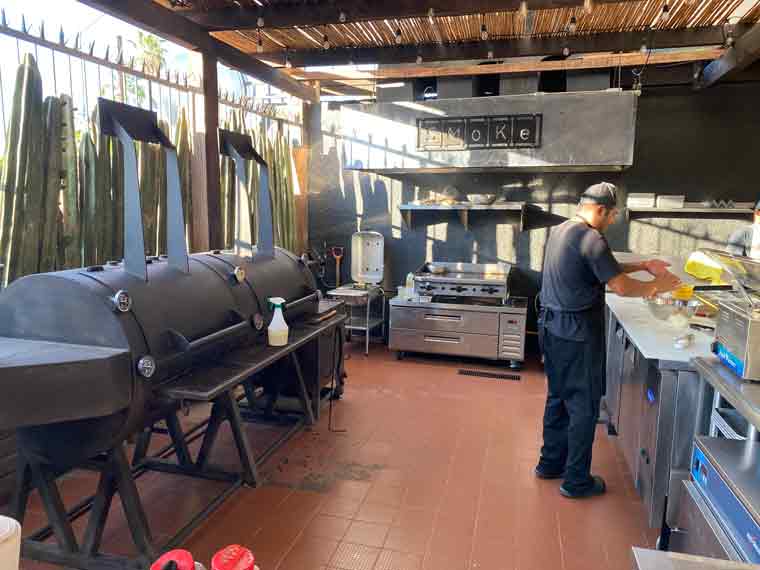 Do you need your fix of Texas-style BBQ? There is no place in Los Cabos like Taba BBQ. Located on 5 de Mayo just a block north of the civic park, Taba BBQ has one of the biggest smokers in Los Cabos (affectionately referred to as Big Bertha by Kris Kabush, the owner). We first started to enjoy Kris’ BBQ during the pandemic when he offered delivery on take out on weekends from his house in Chamizal in San Jose del Cabo. The two years ago, he opened an actual location on the Terminal 1 Pier by Breathless. Almost a year ago, he moved to his new location. With both inside (air conditioned) and outside covered seating, the atmosphere is great. Consistent with the food, the music playing on the speakers is blues from artists like Stevie Ray Vaughan, B.B King and more.