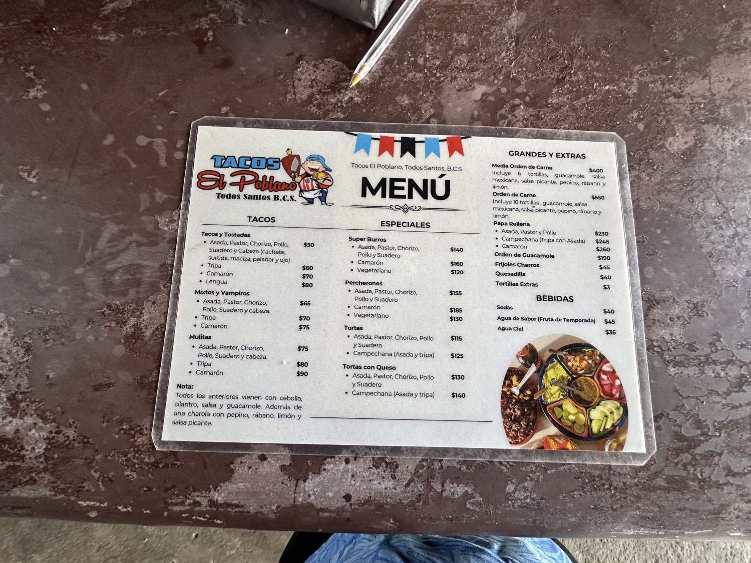 If you are looking for great tacos in a small local restaurant in Todos Santos, try Tacos El Poblano. For more information visit them on Facebook at https://www.facebook.com/profile.php?id=61566555343526 or check on the reviews on Google and Tripadvisor