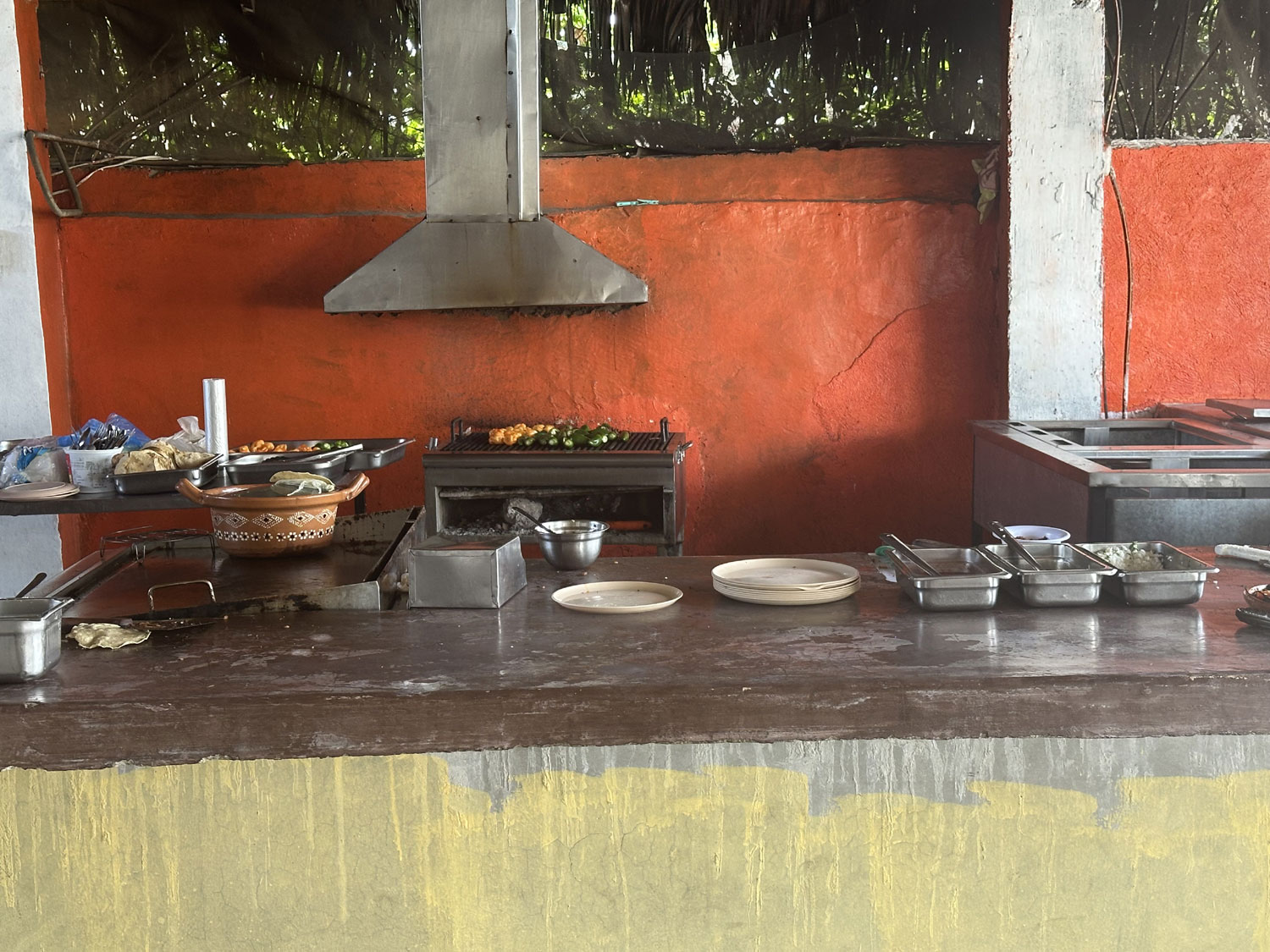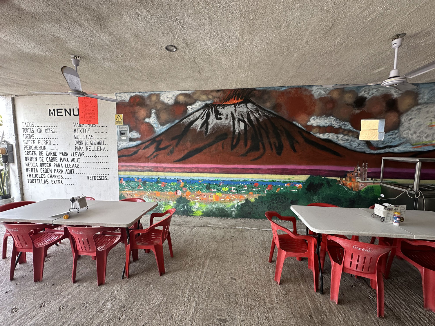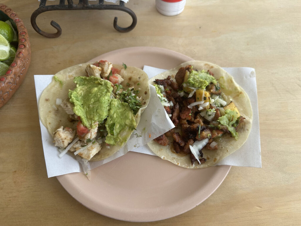 When the tacos were served, each had a lot of meat – chicken and al pastor and were piled high with the extras. The flavors were excellent with fresh tortillas. The prices were also very good – two tacos and two large drinks came to $190 pesos.