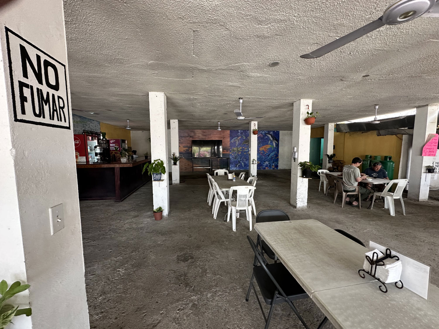 Todos Santos is full of small restaurants, serving all different styles of food. Looking for small taco places, I saw a lot of positive reviews for Tacos El Poblano on Calle Heroico Colegio Militar, between Márquez de León and Hidalgo. It is a simple place with a large dining area. As I walked in, the cook at the grill offered me a menu. There were also menus painted on the walls. The menu offers a wide choice of tacos, vampires, burritos, sandwiches and sandwiches with cheese, quesadillas, stuffed baked potatoes, and large orders of meat and the fixings to go.