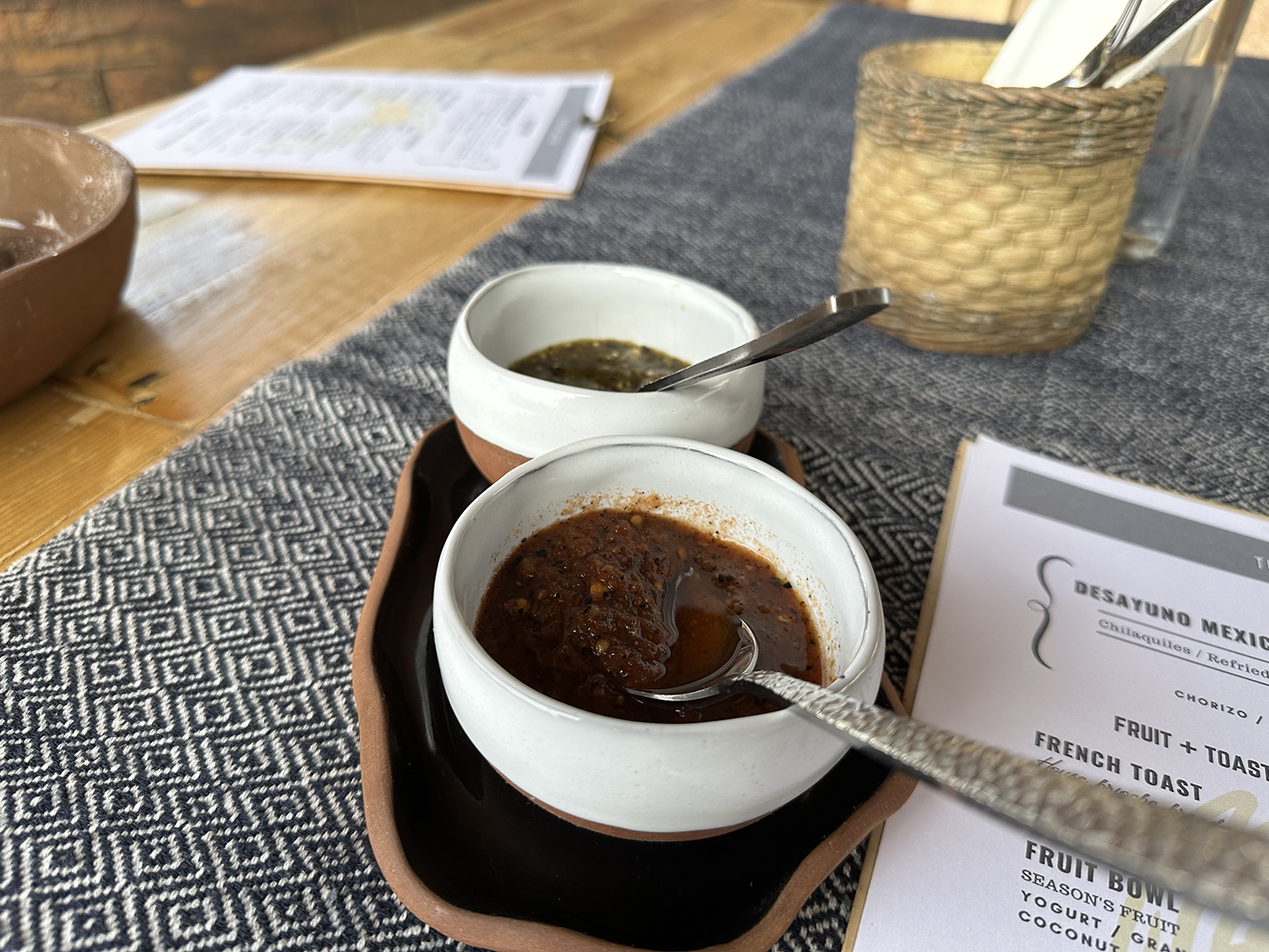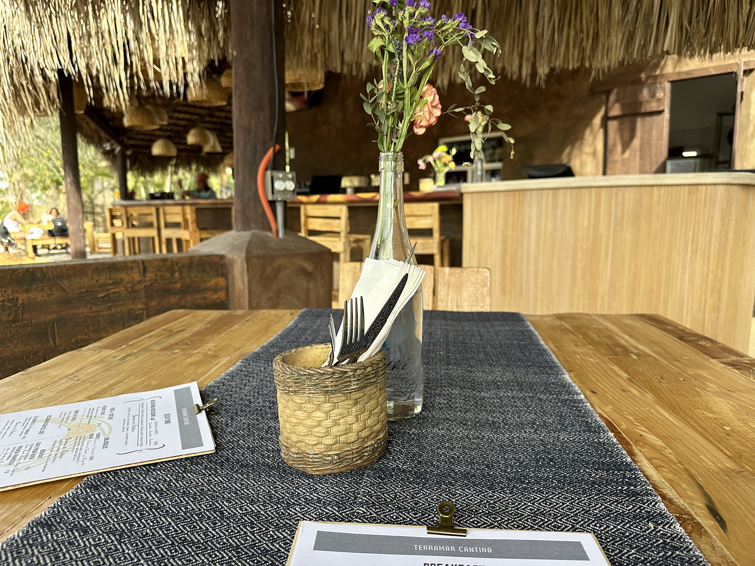 Terramar Cantina had been a small restaurant that Raul and Ken completely recreated with a rustic but very comfortable atmosphere both outdoors and under a palapa. The kitchen was doubled in size and a wood-fired pizza oven and grill add to the offerings. The built a small stage on one side of the restaurant so they can have live music on a regular basis. The attention to detail shows in the selection of table runners and dish ware that was sourced from Oaxaca. The lighting, both outdoors and under the palapa is also amazing. A great sound system offers music at just the right level.
