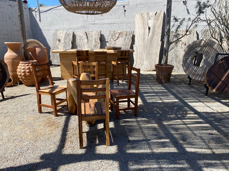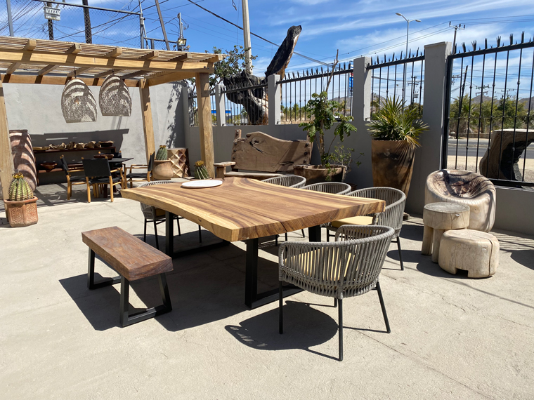Driving in from the Airport in San Jose del Cabo, we had often noticed the Terra Cu furniture location just past the Aramburo Shopping Center on the right. It was always noticeable because of the large natural wood top tables that we on display in the yard near the highway. In 2020, Terra Cu opened a second location in the La Jolla condos building south of San Jose del Cabo in Costa Azul. My wife and I finally took the opportunity to stop and look at the furniture on display.