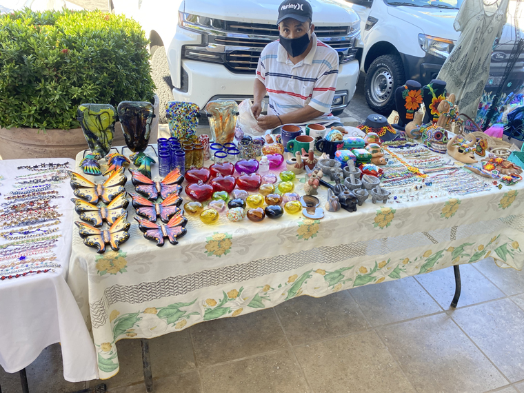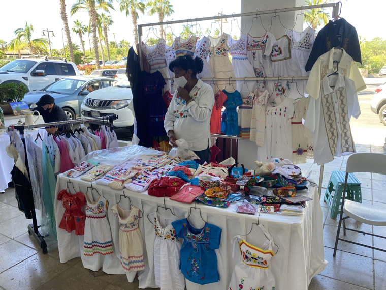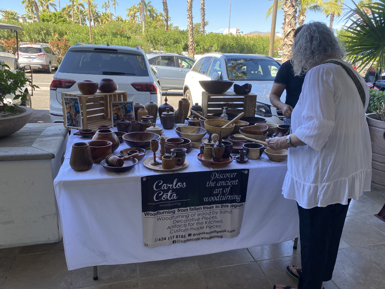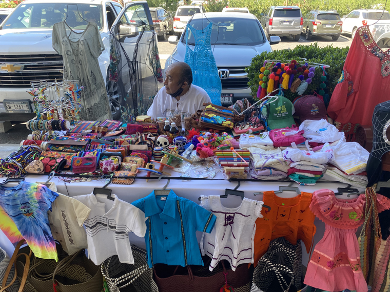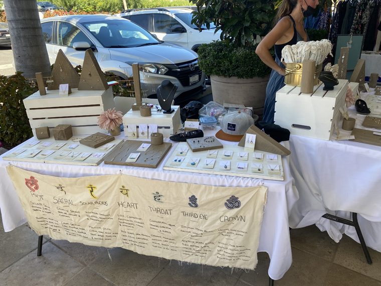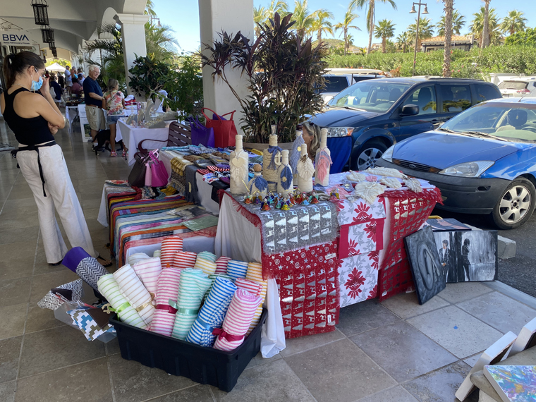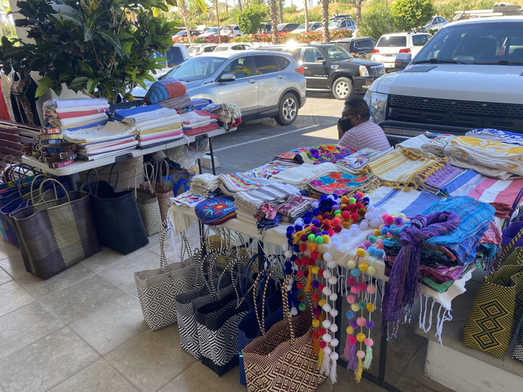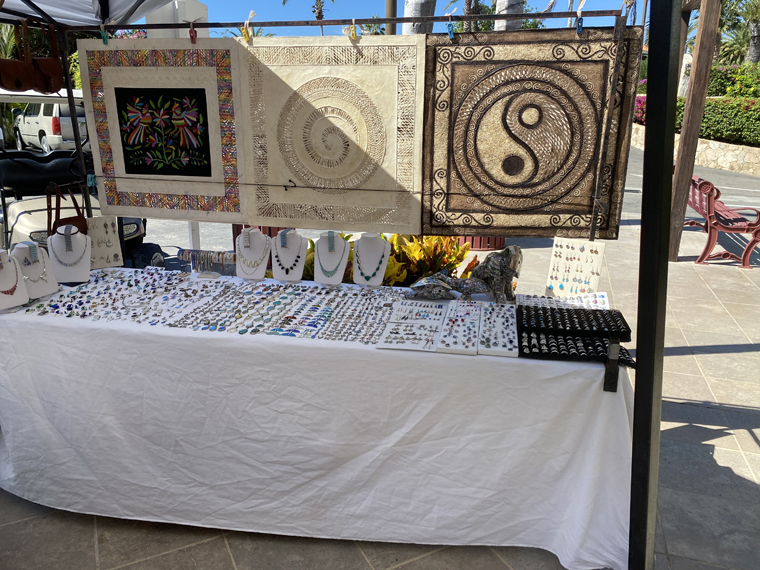 Vendors set up on the sidewalk in front of the stores as well as in the open plaza between Chin’s Cabo and Nick-san restaurants. Like other markets, you can get organic and fresh vegetables and other food items, handmade clothing, jewelry, all types of arts and crafts including original woodwork and embroidery, and organic health and beauty products.