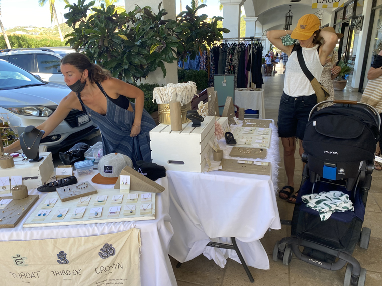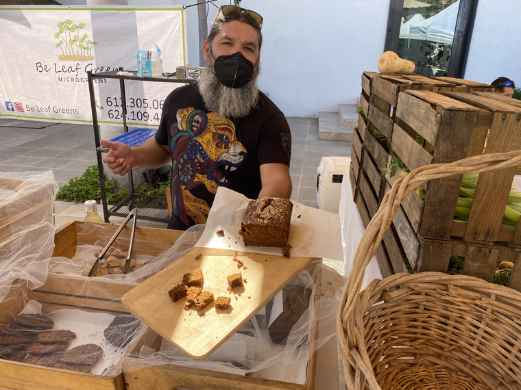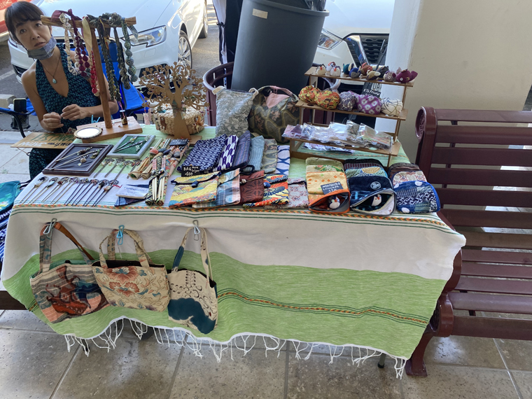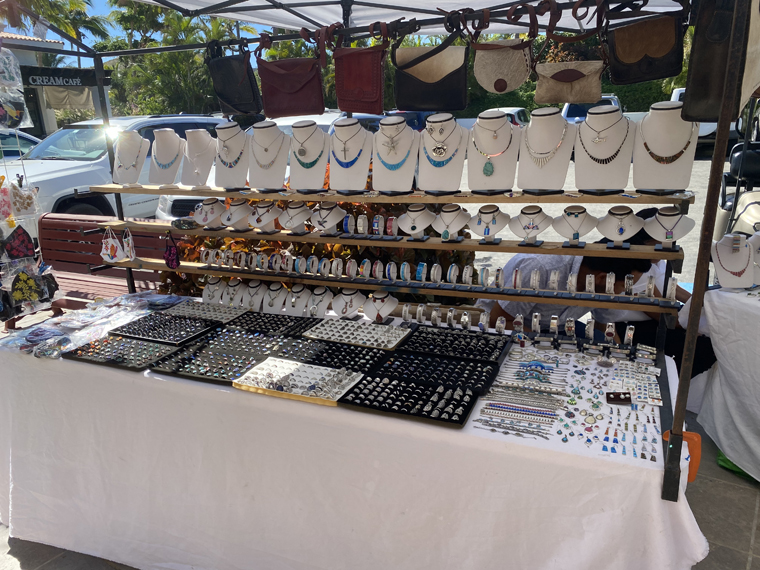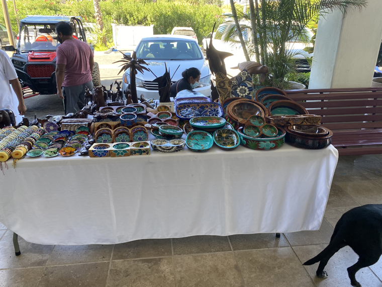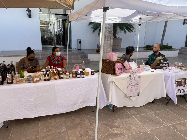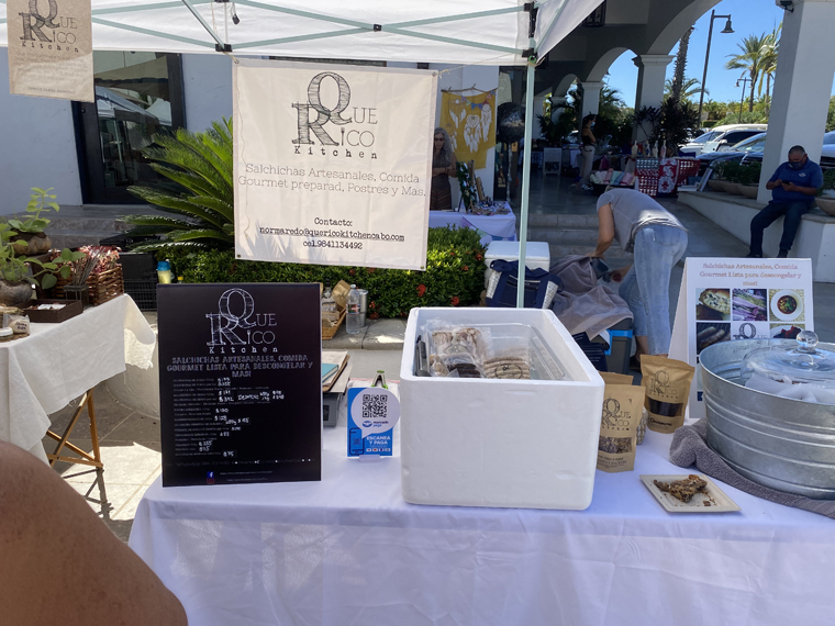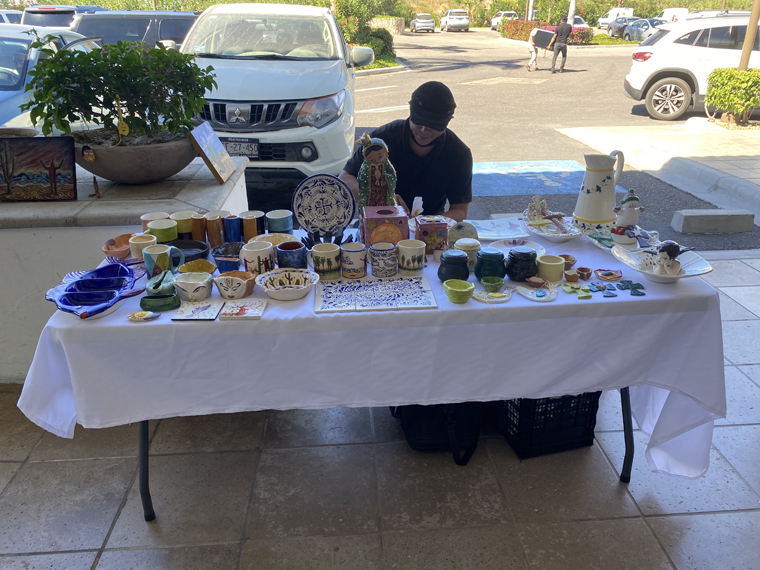 Vendors set up on the sidewalk in front of the stores as well as in the open plaza between Chin’s Cabo and Nick-san restaurants. Like other markets, you can get organic and fresh vegetables and other food items, handmade clothing, jewelry, all types of arts and crafts including original woodwork and embroidery, and organic health and beauty products.