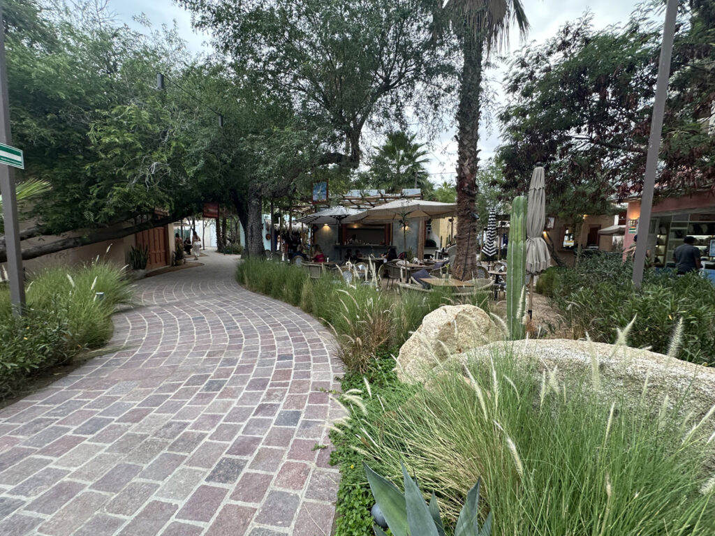For now, the entry area of The Place at Cabo has become an outdoor food court and shops to engage residents and tourists alike. Entering from Blvd Marina, there are over 20 restaurants and shops in the open area leading down to the marina. Well-known restaurants from other areas – Jardin Secreto (San Jose del Cabo), Buzos (La Paz) – bars, clothing stores, a major art gallery (Minch Gallery), a series of stalls with artisanal products, a jewelry store, and live entertainment on Saturday nights make this a special place to visit.