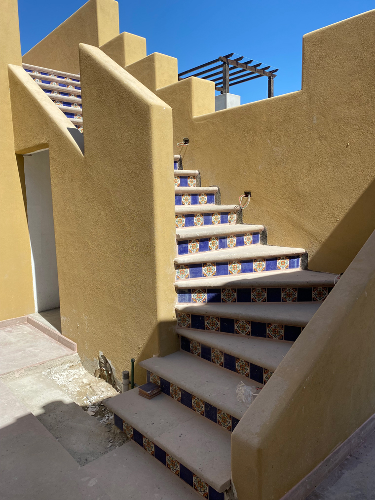 For more information on the handmade talavera tiles used on the stair risers visit Terrazul Tiles Arte En Azulejos on their website at https://terrazul-tiles.negocio.site/ or on Facebook at https://www.facebook.com/terrazultiles.azulejos