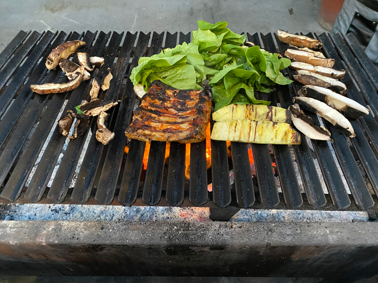 The restaurant is truly a backyard setting. Open from 5:30 to 10:00pm, tables are placed in a backyard setting with great outdoor lighting, heaters and light jazz playing through the speakers. At one end is a large grill, on which almost everything is prepared. The menu has a great range of options – from bruschetta and empanadas, to salads, tacos, Mac & Cheese and risotto. From the grill come steaks, chicken, ribs, octopus and more. Side dishes include roasted potatoes, grilled vegetables and even a baked potato.
