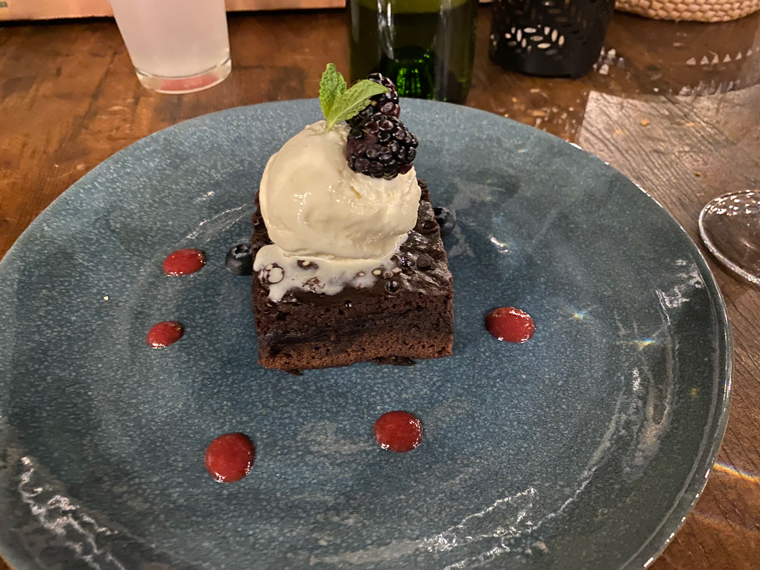 Those same grilled mushroom slices were added to the risotto (not just small chopped up mushroom pieces). It was creamy. I had over ordered and so some tacos and risotto came home for dinner the next day. We finished off our meal with their brownie and vanilla ice cream desert (I did sneak a taste of the ice cream even though it is not on my vegan diet).