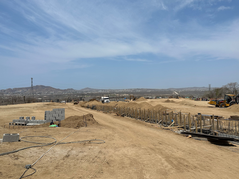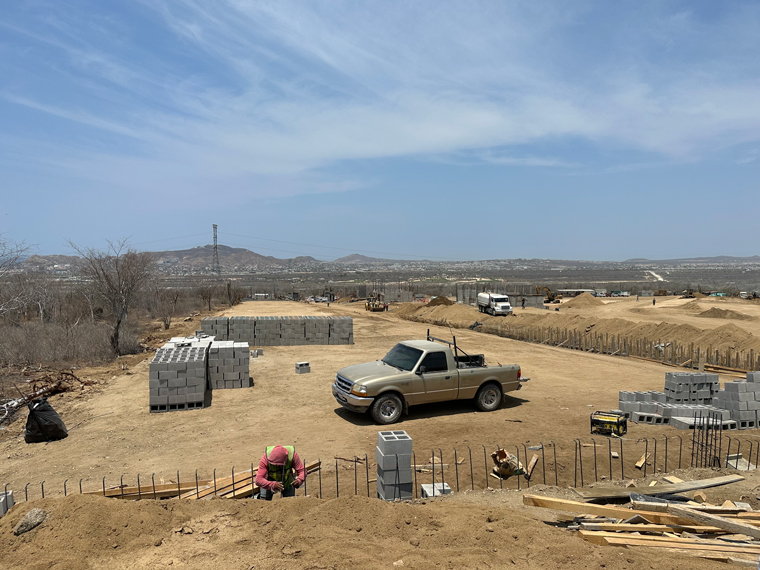 I had the opportunity to meet with Christian Gonzalez and his team in their sales office on the second floor at Plaza Novva a few blocks behind Costco. Christian took me through their overall presentation and then took me on a tour of the site and the current state of the construction. We drove through the large triangular property where crews were busy working on the infrastructure – water channels, power and plumbing lines, swimming pools- and the entrance to Turquesa and the first three buildings that will be available. As water and power are major issues throughout Los Cabos, Christian described the strategies that they have development for water capture and storage at both the development and individual building level. Some of this is shown in the photos below.