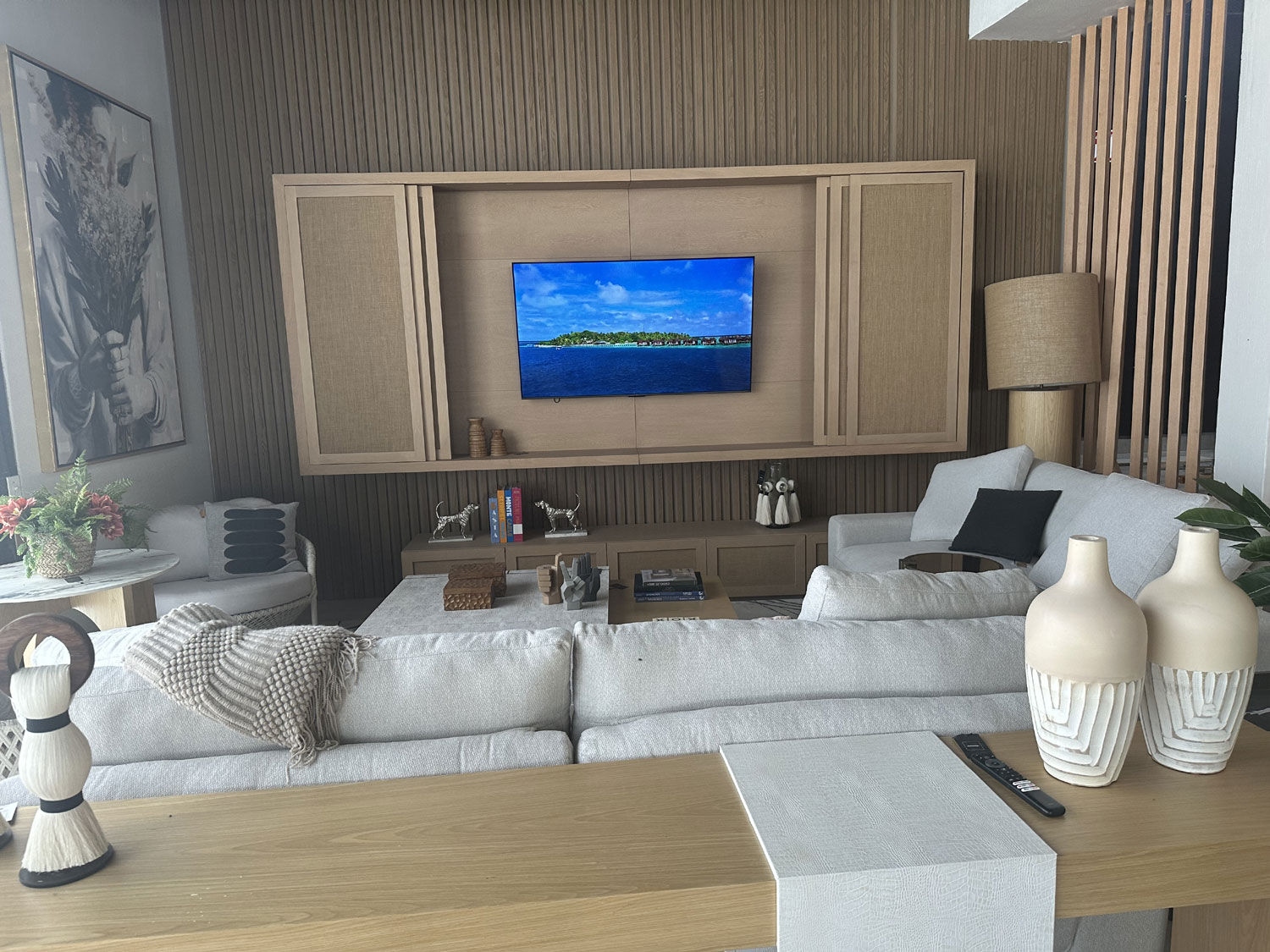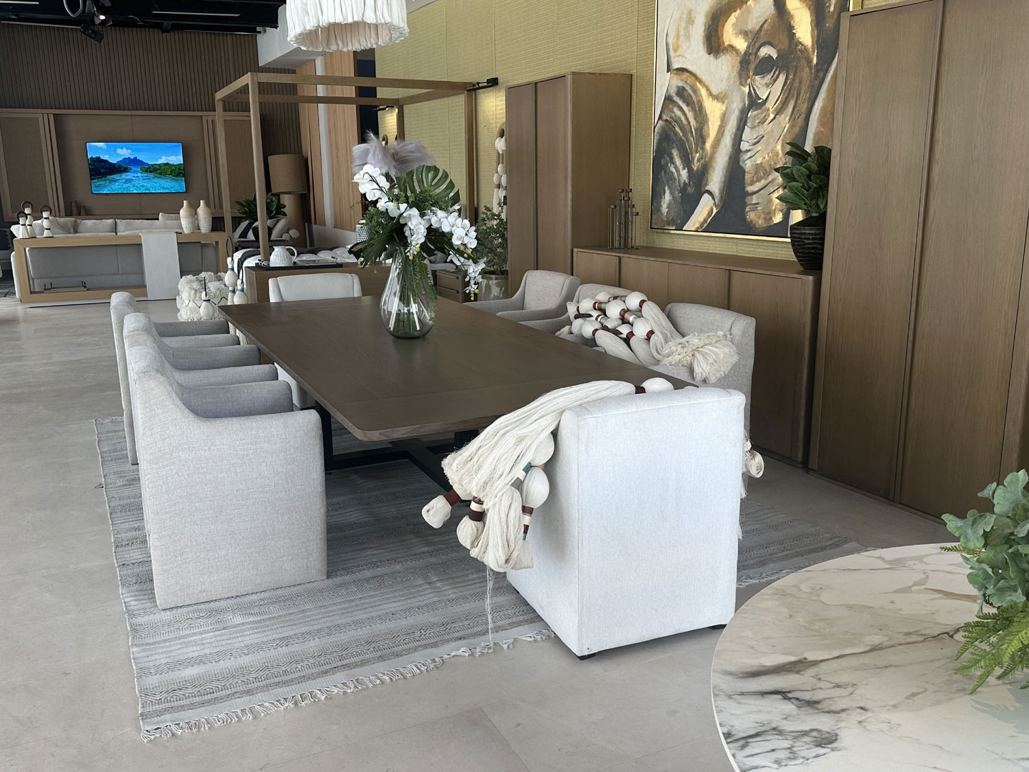 What Makes We Design Different? We Design is not just a furniture store. It is a full-service interior design company that wants to turn YOUR vision into a reality. It starts with the blueprints or measurements of your home – condo, townhouse or house. It continues with an in-depth discussion of your tastes, preferences for colors and fabrics, and even pictures that you have found that represent the style and type of furniture that you would like. The next step is for the team and We Design to provide a complete proposal with renderings of every room that places the recommended furniture in each room. A meeting in person or through Zoom to review the recommendations and make changes helps to finalize a plan for your residence. In most cases, We Design can design and manufacture it to your preferences. For outdoors spaces, We Design has furniture from Couture, Vondom and Armen Living available at the showroom or they can manufacture custom outdoor furniture in woods and special fabrics that withstand the weather of Los Cabos.A few pages from renderings of the home of an actual client are included in the photos below.
