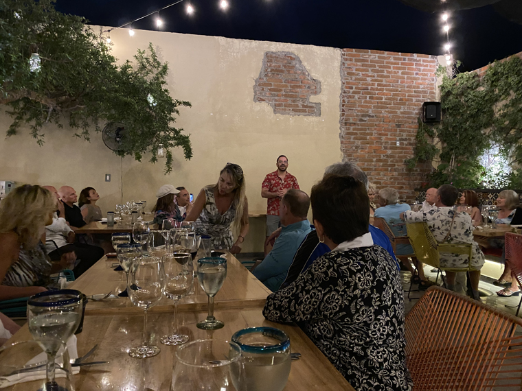 Monday, March 6th, 6:30 pm at Torote Restaurant. A new farm-to-table restaurant in Cabo. Dawn Solomon has organized two events here in October and November 2022. The menu completed and Evite coming soon.